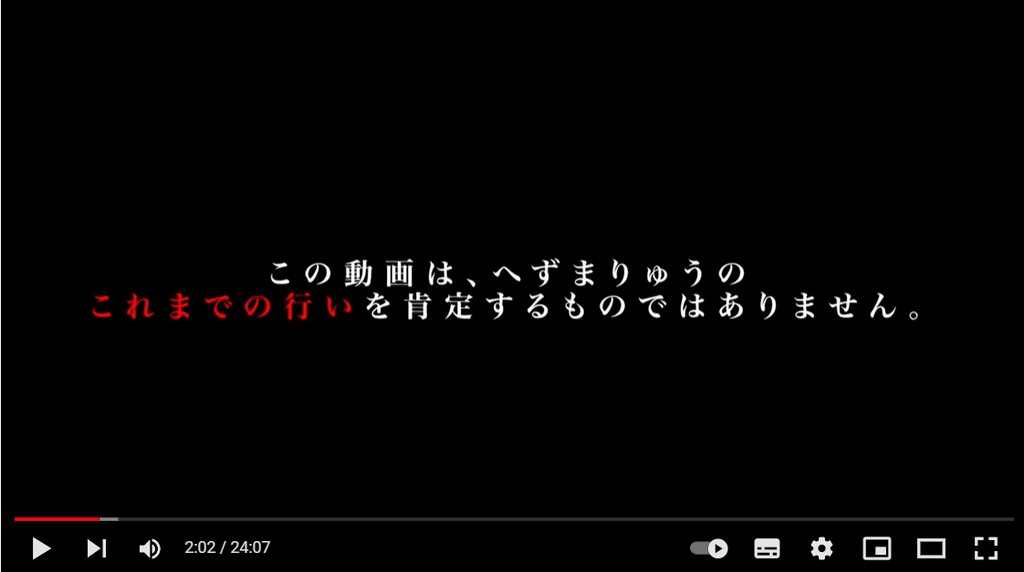 動画の冒頭には、「この動画は、へずまりゅうのこれまでの行いを肯定するものではありません」