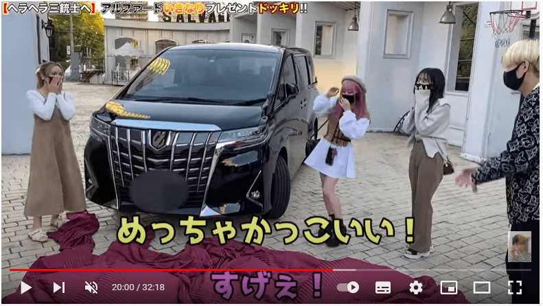 そこが一番大事だと思うとコメントし一番良いやつではないと言いつつもなんと400万円もする車‼アルファードをサプライズでプレゼントするという企画。