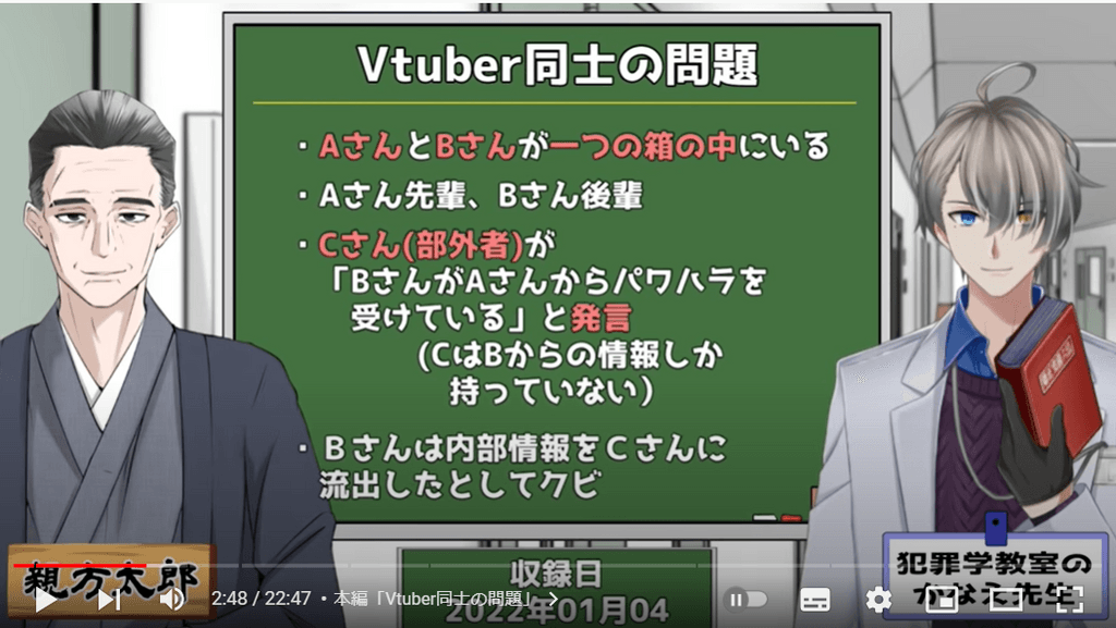 このVチューバー提訴に関して、『懲役先生 〜聴く、犯罪情報バラエティー番組~』にて詳細の解説と問題点を取り上げました。まず、今回の提訴までの流れを詳しく解説しています。
