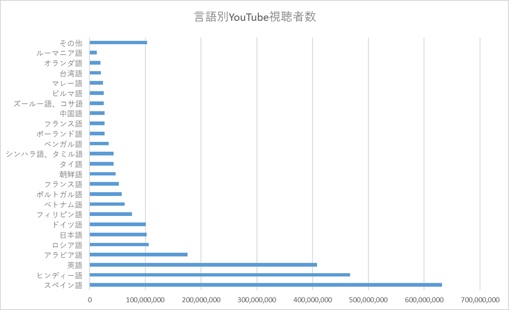 | 国 | YouTube視聴者 | 人口 | 公用語 |